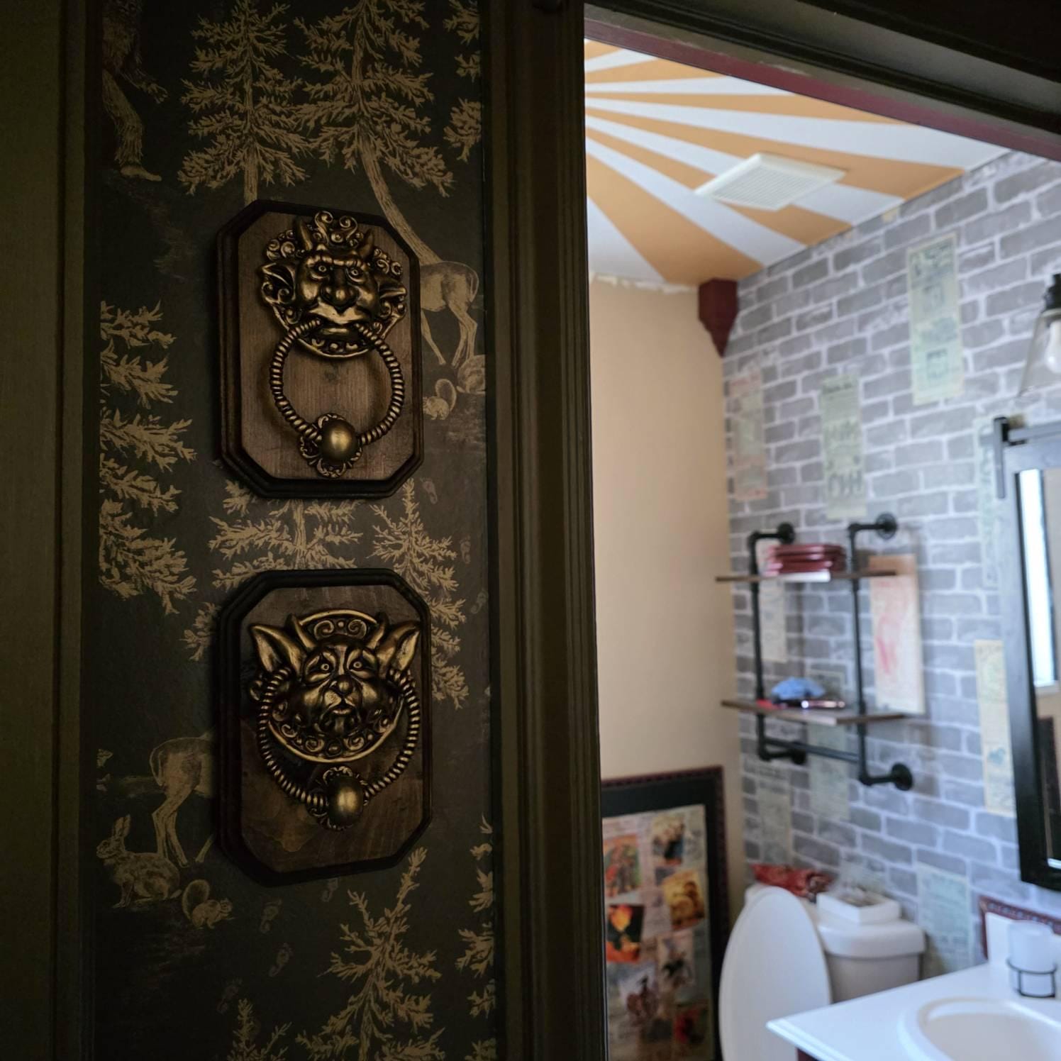Original sculpted labyrinth door knockers made from sculpey and glued to Wood.